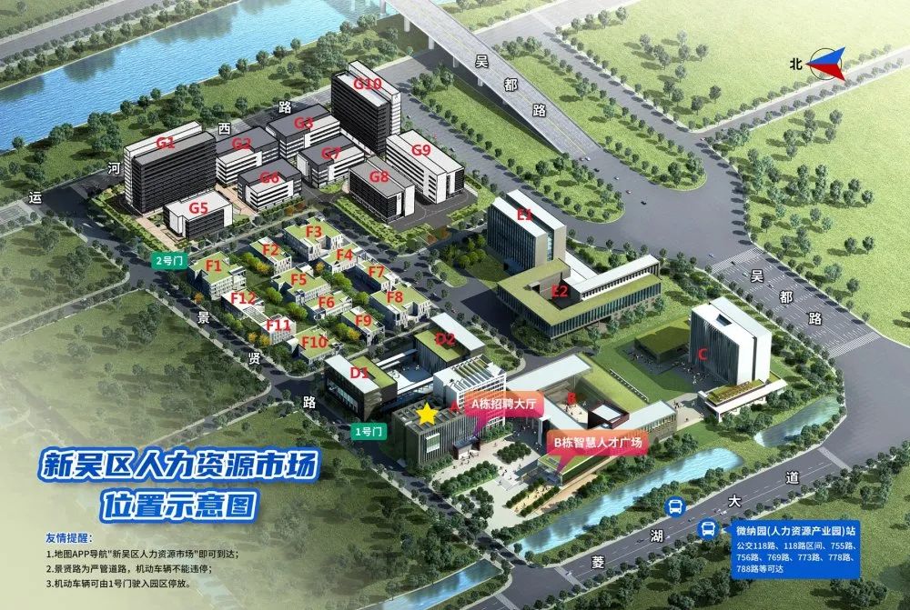 公交118、118區(qū)、755、756、769、778、779、788等線路均可直達(微納園<人力資源產(chǎn)業(yè)園>站下車),導航軟件可搜索“新吳區(qū)人力資源市場”