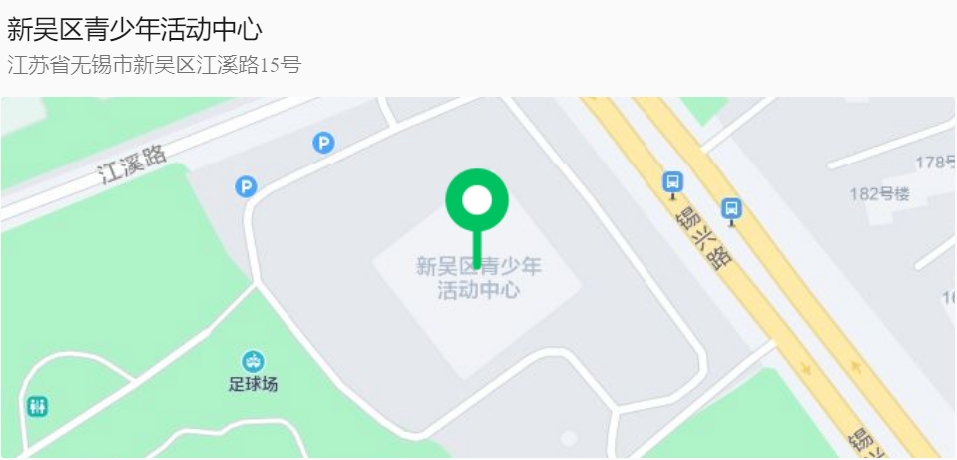 新吳區(qū)青少年活動中心地址:無錫市新吳區(qū)江溪路15號