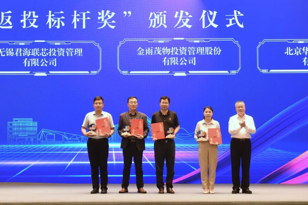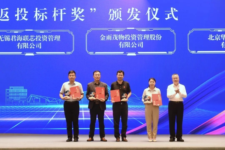 章金偉為國新基金、誠通基金、晨壹基金、58集團(tuán)頒發(fā)“戰(zhàn)略合作獎(jiǎng)”,為君海聯(lián)芯、金雨茂物、國聯(lián)新創(chuàng)、華軟投資頒發(fā)“返投標(biāo)桿獎(jiǎng)”,為中國新城鎮(zhèn)、錫創(chuàng)投、華英證券、南京銀行頒發(fā)“金融賦能獎(jiǎng)”。