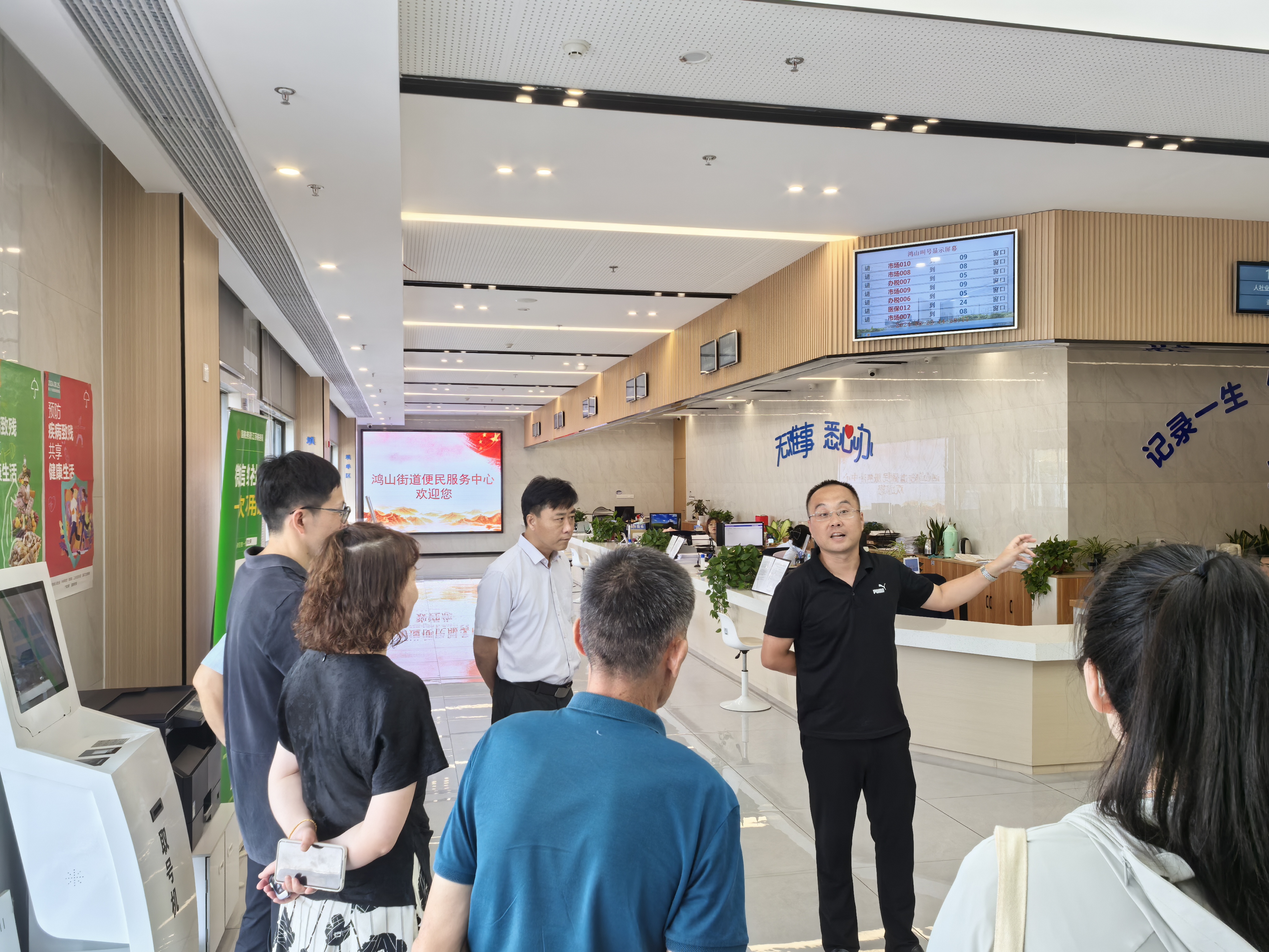 參觀結束后,在街道便民服務中心會議室召開座談會。會上,鴻山街道黨工委委員劉桐佑向各位代表介紹了中心重點工作以及亮點舉措,匯報了便民服務中心落實深化“放管服”改革等有關工作的情況成效。就進一步抓好下階段工作,他表示:一是要秉持“便民、高效、規(guī)范、陽光”的服務宗旨,打造高效、優(yōu)質、便民的政務服務環(huán)境,不斷提升辦事效率,將便民服務真正落實落細。二是要積極開展“跨區(qū)域通辦”事項內容擴充和形式創(chuàng)新工作,完善“跨區(qū)域通辦”工作流程,實現(xiàn)線上線下融合發(fā)展,進一步打破地域界限,協(xié)同促進區(qū)域經濟共同發(fā)展。三是要做到“主動服務、靠前服務、精準服務”,不斷提高辦事體驗感和便捷度,讓群眾真正感受到便利和實惠,切實增強群眾的滿意度、獲得感、幸福感。各位代表踴躍發(fā)言,圍繞回應群眾辦事需求、提升政務服務能力、保障惠民政策落地等方面開展了熱烈交流。