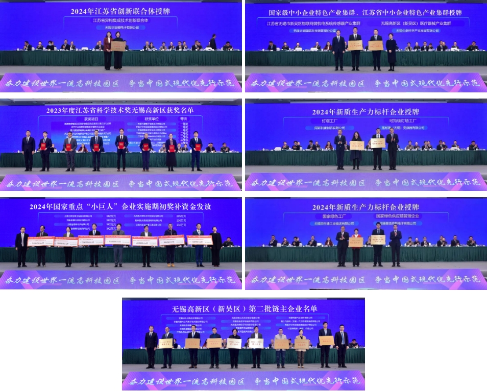 會議為江蘇省科學技術獎獲獎單位頒獎,為無錫高新區(qū)(新吳區(qū))第二批鏈主企業(yè),以及燈塔工廠、綠色標桿企業(yè)、國家級中小企業(yè)特色產業(yè)集群、江蘇省中小企業(yè)特色產業(yè)集群、2024年江蘇省創(chuàng)新聯(lián)合體等入選單位授牌,兌現(xiàn)了2024年國家重點“小巨人”企業(yè)實施期初獎補資金,發(fā)布了2024年度無錫高新區(qū)產業(yè)科技創(chuàng)新十大事件、十大成果。