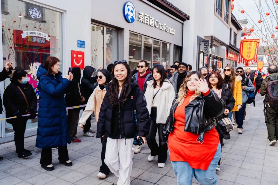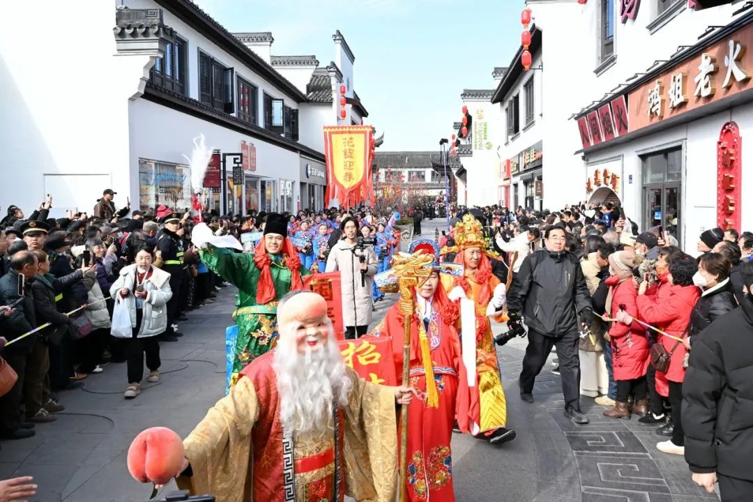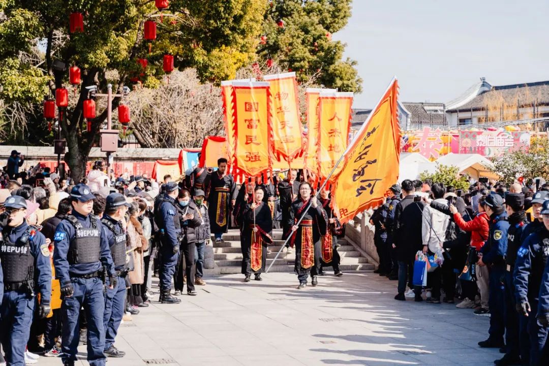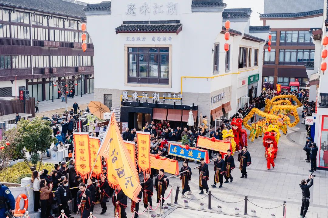 國(guó)風(fēng)快閃和傳統(tǒng)民俗文化團(tuán)隊(duì)表演融合交匯,“方陣巡游+沿線互動(dòng)”氣氛熱烈,中外友人齊聚古鎮(zhèn)街區(qū),用世界的眼光感受非同尋常的年俗文化、國(guó)潮文化、非遺文化。