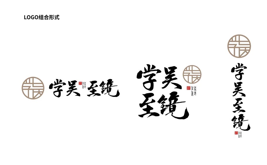 logo設計上以“學”字和“吳”字融合成古鏡紋樣,疏密錯落結(jié)構(gòu)精巧,復古銅色簡約大方。同時,外圓內(nèi)方構(gòu)成基礎框架,象征“不以規(guī)矩不成方圓”的自律精神。整體圖案如同自省自照的銅鏡背面,也如同對外展示的格柵窗欞,兼具檢察文化、設計美學和品德追求。