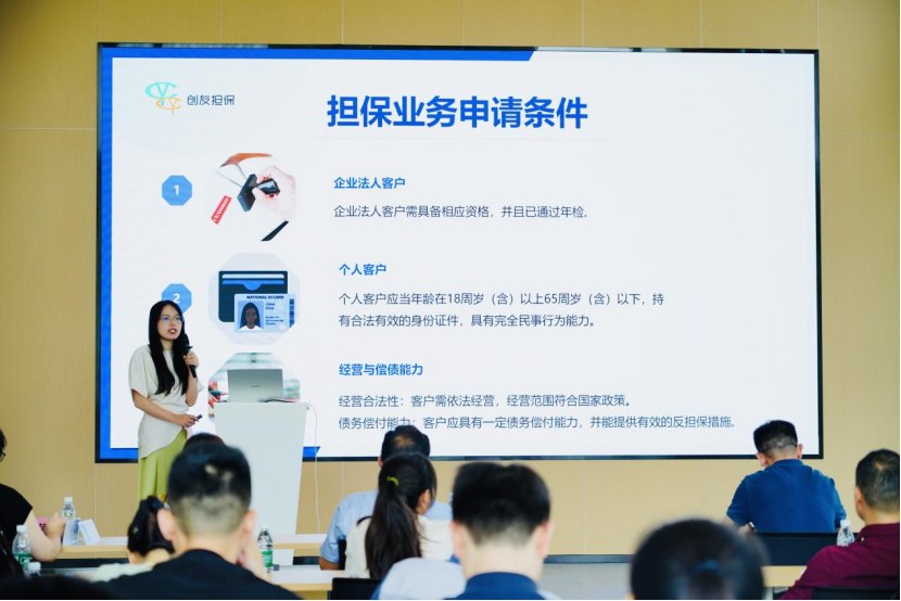 政策解碼靶向施策,專(zhuān)業(yè)服務(wù)紓困解難。在政策宣講環(huán)節(jié),創(chuàng)友擔(dān)保項(xiàng)目經(jīng)理馬莉系統(tǒng)解讀了融資擔(dān)保政策體系。從適用對(duì)象、申請(qǐng)流程、反擔(dān)保措施創(chuàng)新等關(guān)鍵內(nèi)容,結(jié)合典型案例進(jìn)行深度剖析,為企業(yè)提供可直接落地的操作路徑。