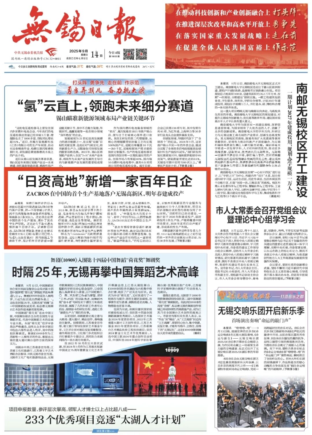 無錫交響樂團(tuán)新樂季萬眾矚目、蓬勃藝術(shù)活力與深厚人文精神交相輝映、科技創(chuàng)新動(dòng)能強(qiáng)勁迸發(fā)、自主研發(fā)與科產(chǎn)融合提質(zhì)并進(jìn)。本周,無錫高新區(qū)這些方面被央媒、省媒、市媒關(guān)注!