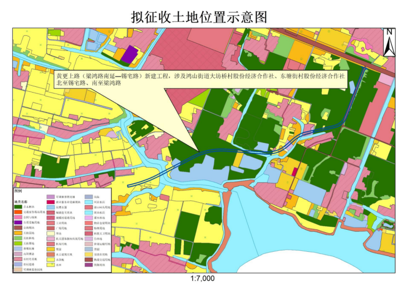 本次擬征收土地位于無錫市新吳區(qū)鴻山街道大坊橋村股份經(jīng)濟合作社、東塘街村股份經(jīng)濟合作社范圍內(nèi)。擬征收土地位置詳見附圖。實際征收土地范圍以最終批準(zhǔn)文件為準(zhǔn)。