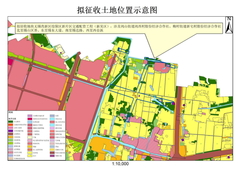 本次擬征收土地位于無錫市新吳區(qū)鴻山街道鴻西村股份經(jīng)濟(jì)合作社、無錫市新吳區(qū)梅村街道新宅村股份經(jīng)濟(jì)合作社范圍內(nèi)。擬征收土地位置詳見附圖。實(shí)際征收土地范圍以最終批準(zhǔn)文件為準(zhǔn)。